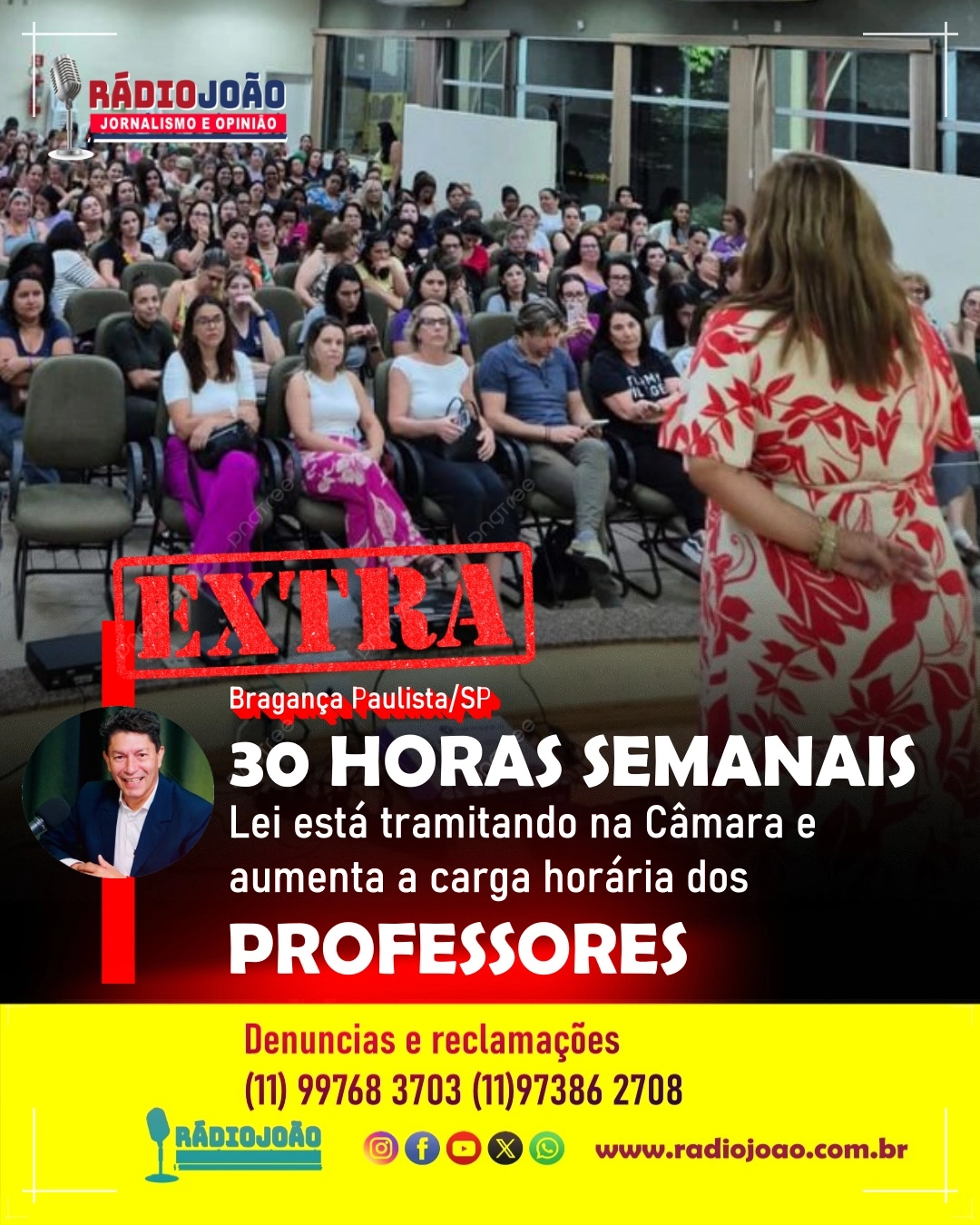 .......A Câmara Municipal de Bragança Paulista realizará, nesta sexta-feira (12/12), às 18h, uma audiência pública para discutir o Projeto de Lei Complementar (PLC) 29/2025, que prevê mudanças na carga horária dos professores da rede municipal de educação. A proposta permite que docentes passem das atuais 26 horas semanais para até 30 horas aula, mediante aceite voluntário.